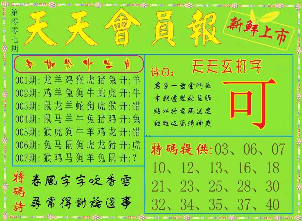 天天好彩人气超高好料