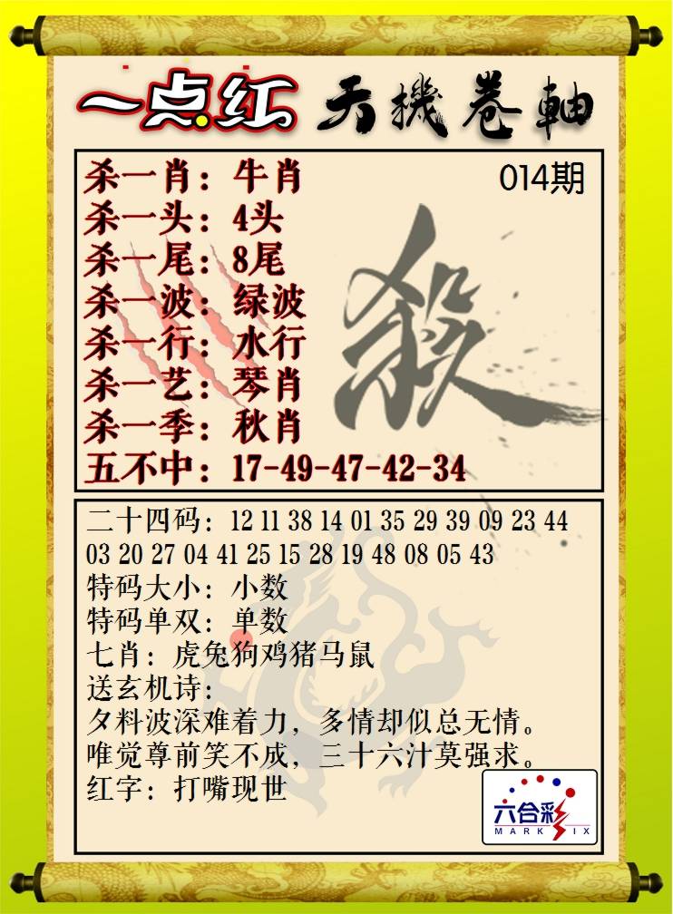 | 014:精选尾数:0.2.3.4.7.9 |